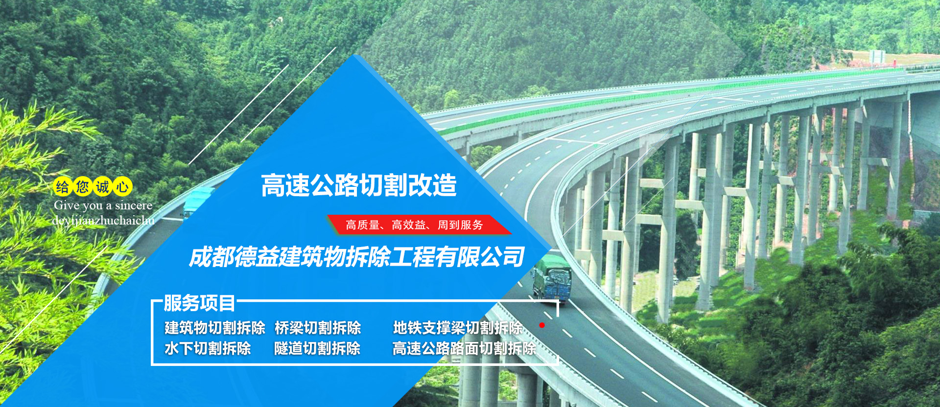 成都德益建筑物拆除工程有限公司是一家專業(yè)混凝土切割拆除,有著多年的混凝土切割拆除施工經(jīng)驗。擁有國內(nèi)外******機械設(shè)備。立足成都,面向全國施工,承接大小切割工程,建筑結(jié)構(gòu)加固工程。專業(yè)承接建筑物切割拆除、橋梁切割拆除、地鐵支撐梁切割拆除、水下切割拆除、隧道切割拆除、高速公路路面切割拆除等工程的鋼筋混凝土切割施工,建立以來一直秉持安全高效的宗旨,在專業(yè)混凝土切割拆除施工領(lǐng)域建立了******的口碑。 一直憑借環(huán)保作業(yè),安全施工,收費合理,誠信服務立足于全國建筑物切割拆除施工行業(yè)。我們與中鐵集團、中國路橋....